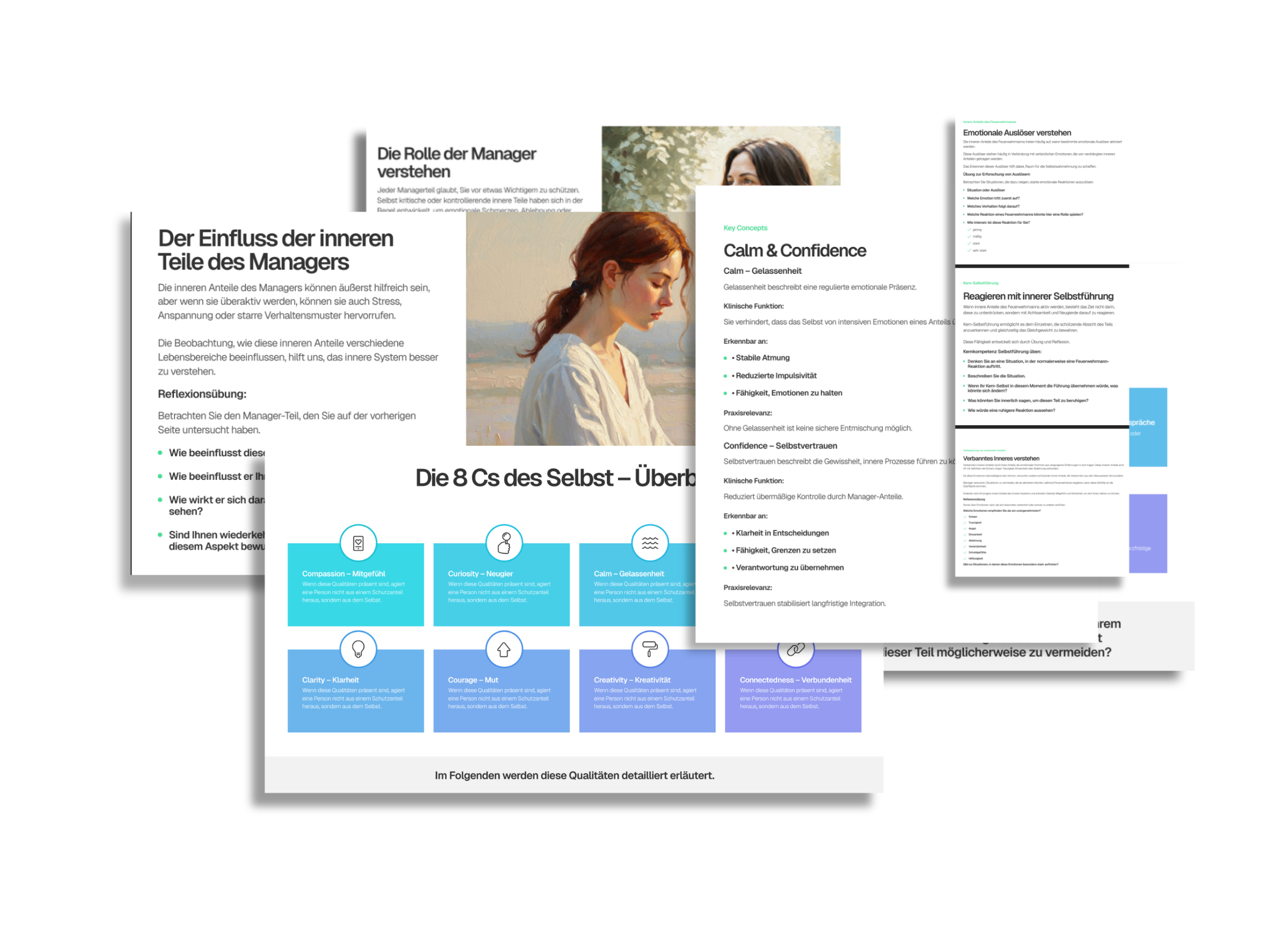 Diese Materialien bieten klare Rahmenbedingungen, Reflexionswerkzeuge und praktische Anleitungen, um eine sichere, ethische und effektive Arbeit mit inneren Anteilen zu unterstützen.